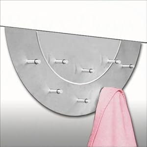 Das Türgarderoben-Set besteht aus zwei halbkreisförmigen Hakenleisten. Die kleinere Garderobe verfügt über drei, die größere über fünf Haken. An den Haken sind jeweils kleine Ringe angebracht, um ein Herunterrutschen der Handtücher oder Kleidung zu vermeiden. Die Türgarderoben können gemeinsam auf die Tür gehängt werden, dann haben Sie an acht Haken Platz für Ihre Wäsche. Selbstverständlich können die beiden Garderoben auch einzeln verwendet werden. Die größere Türgarderobe misst etwa 38,5 x 17,5 cm und die kleinere 25 x 11,5 cm. Die Aufhangvorrichtung ist bei dem größeren Teil etwa 2 cm und bei dem kleineren etwa 1 cm breit. Die Türgarderoben sind aus gebürstetem Edelstahl gefertigt, daher wirken sie sehr elegant und passen zu fast jedem Einrichtungsstil. Das Türgarderoben-Set ist ideal für Bad oder Schlafzimmer geeignet, es bietet viel zusätzlichen Platz für Handtücher und Kleidungsstücke.